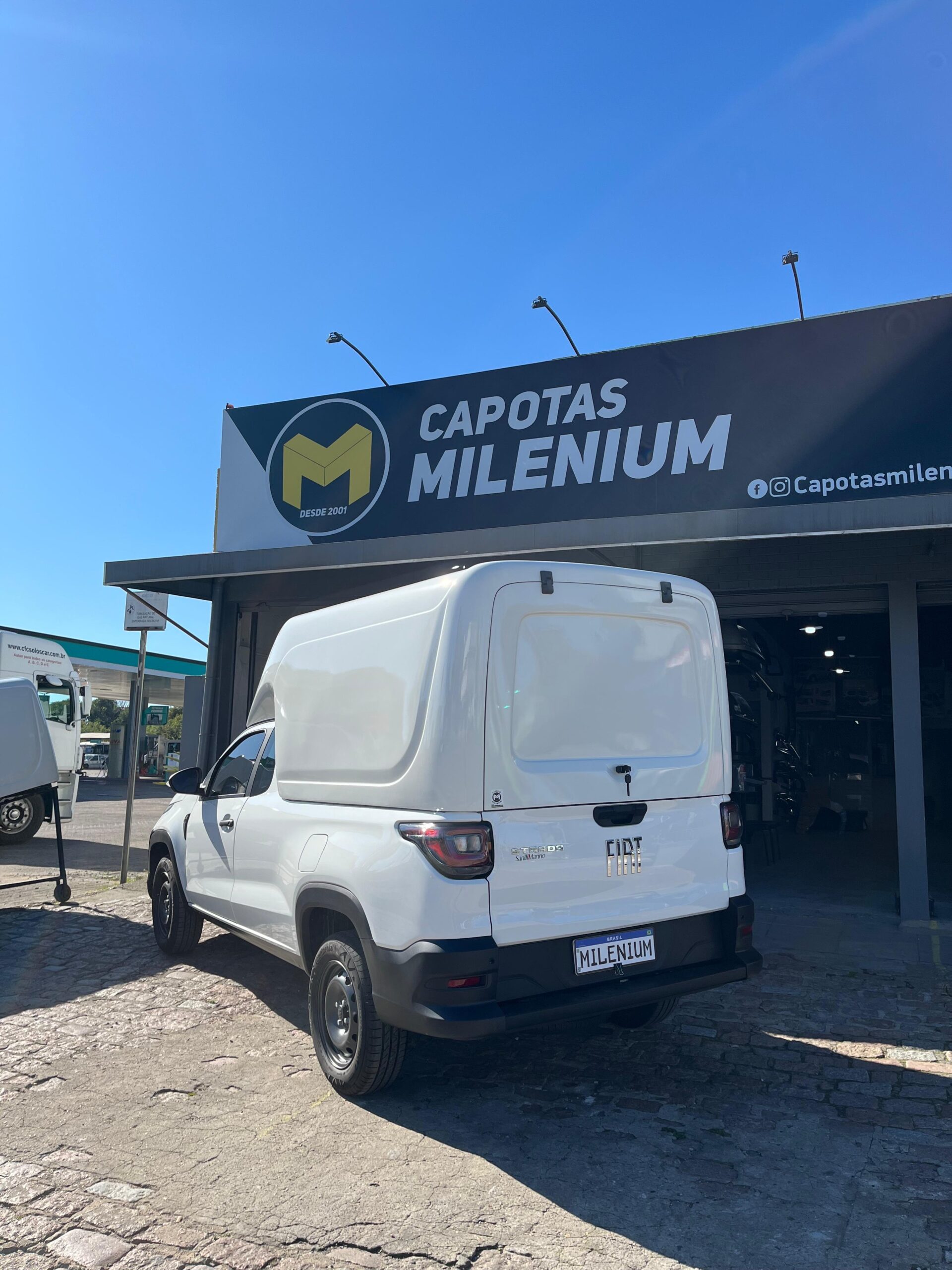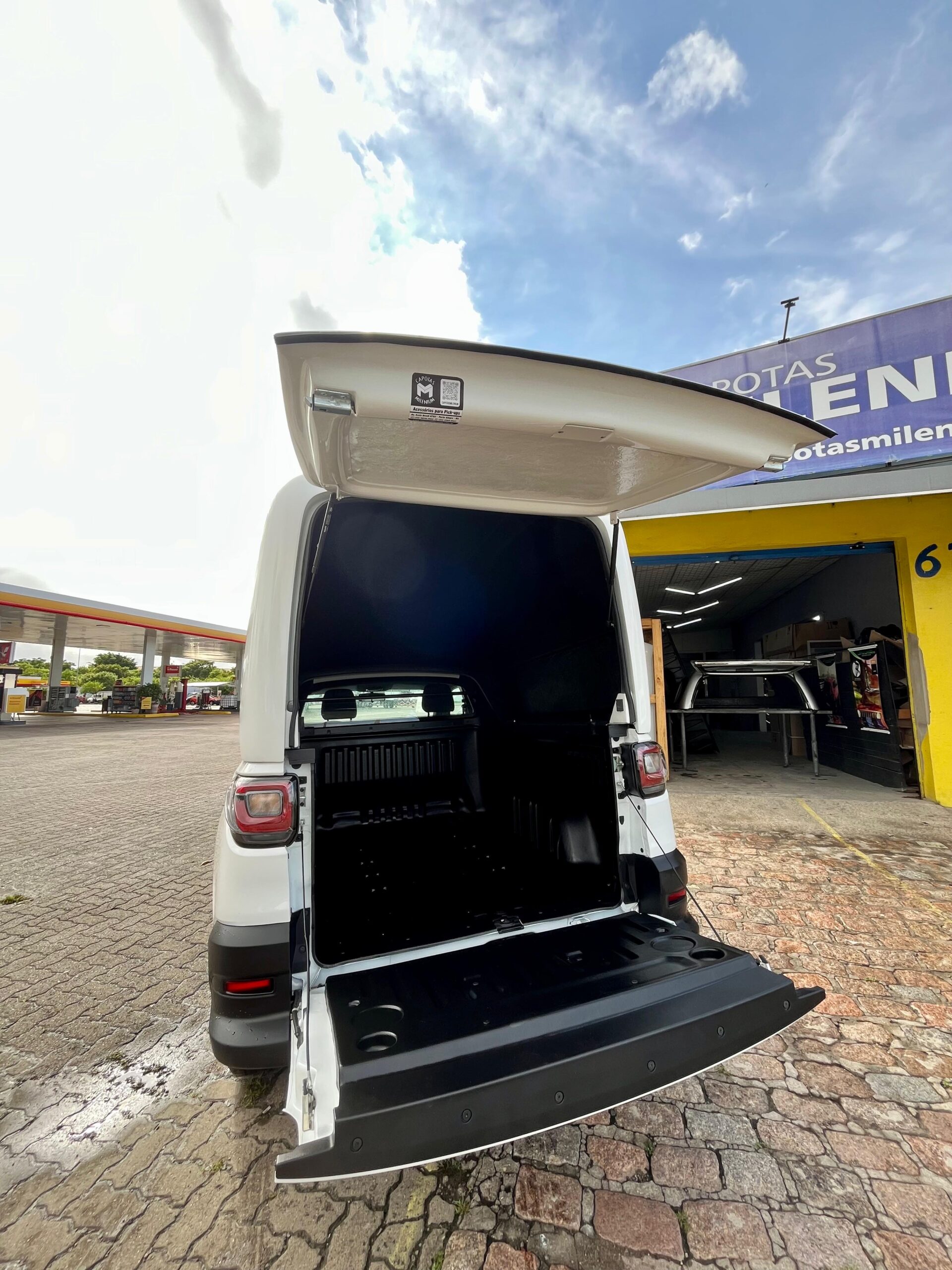 Sistema duplo de fechadura, ou seja, ao fechar a tampa da capota, trava-se ao mesmo a tampa da caçamba.